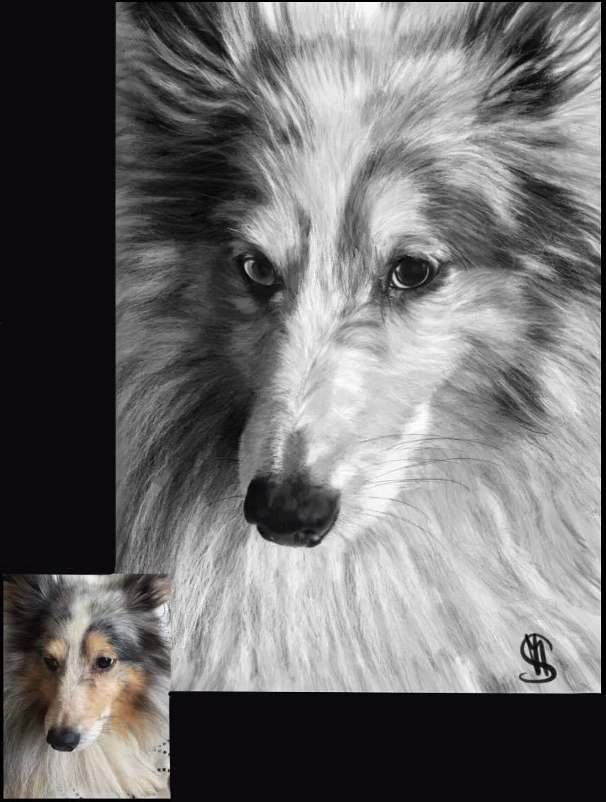 Sadly, not long after this drawing my lovely friend Silvia passed away, suddenly and entirely unexpectedly. One of the comforts is, she will be re-united with her Merlin and the rest of her pack. π