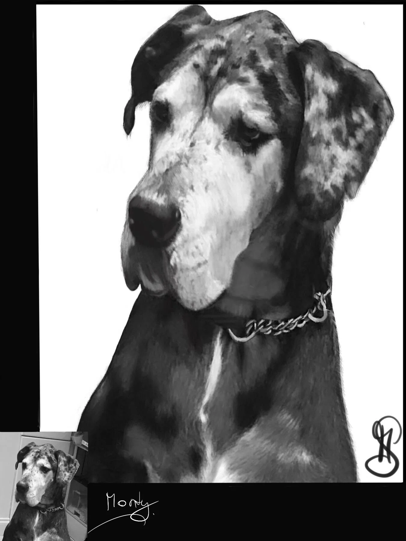 Monty - Another Study of my favorite and most handsome Great Dane. Used different brushes - they don’t lend much to detail but make short hair more realistic.