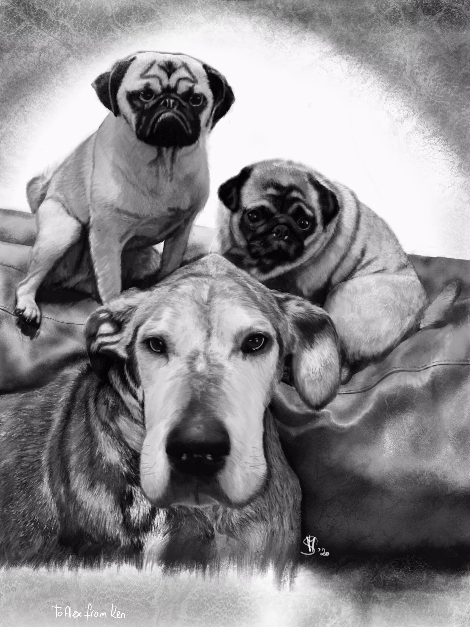 A few years back, the eleven year old human those canines live with, stated; “If I could only have a drawing of Monty and the Pugs, my life would be complete!”
