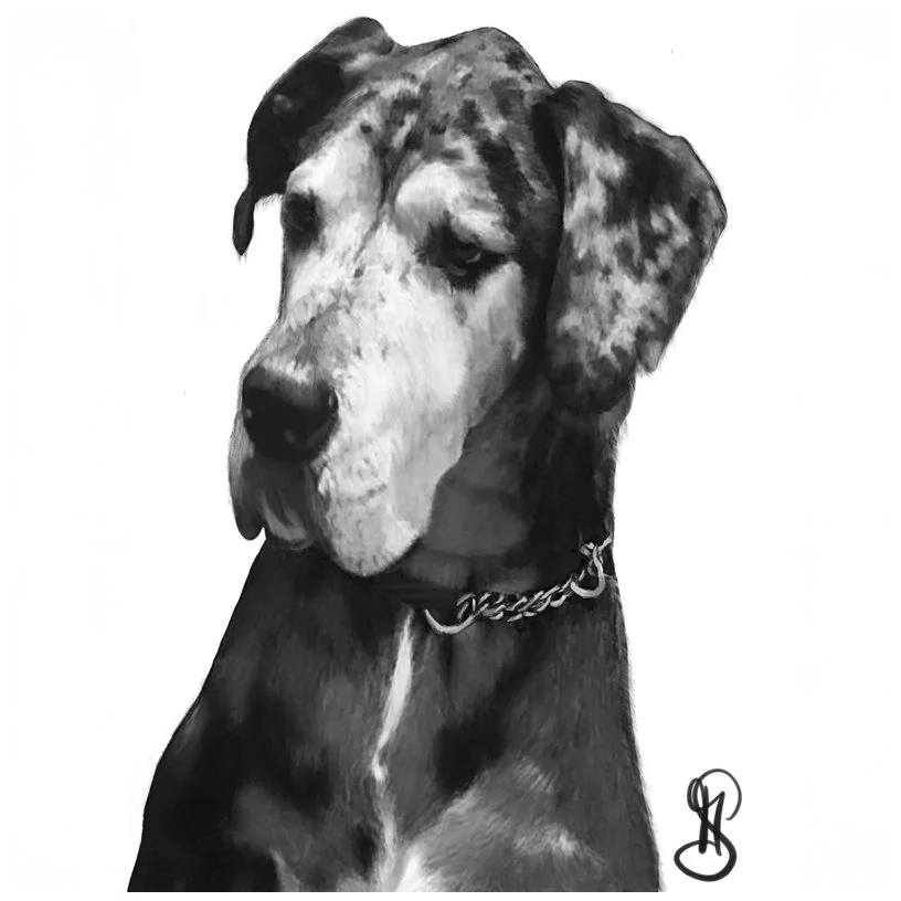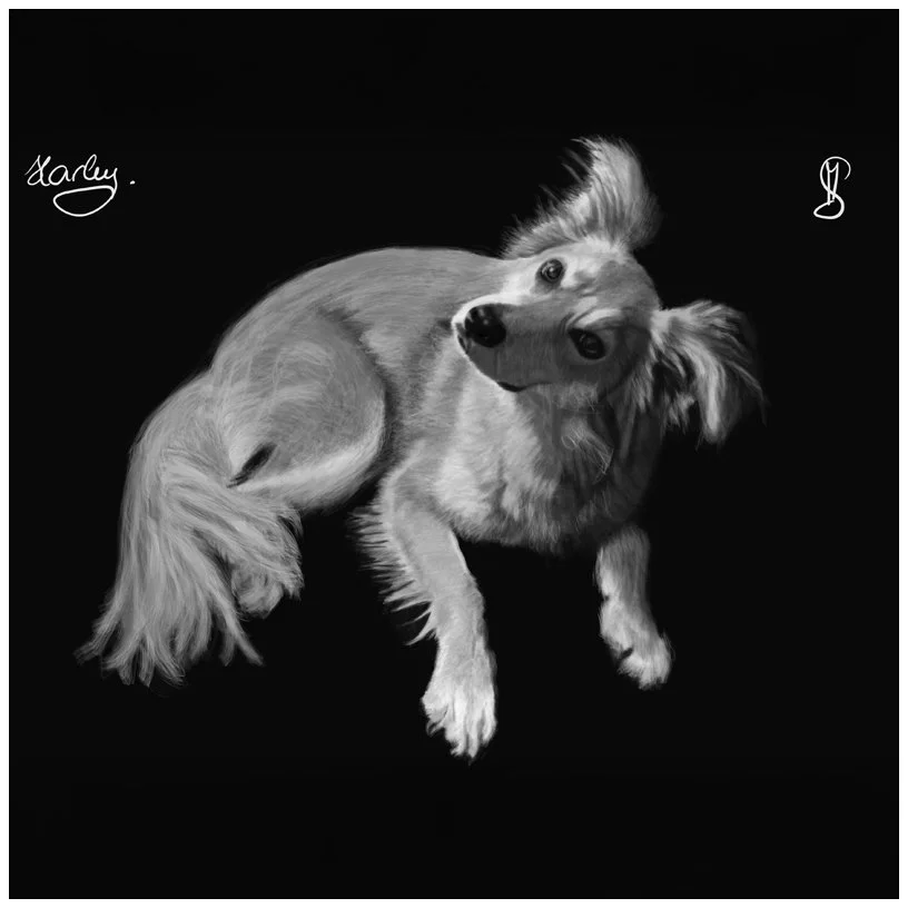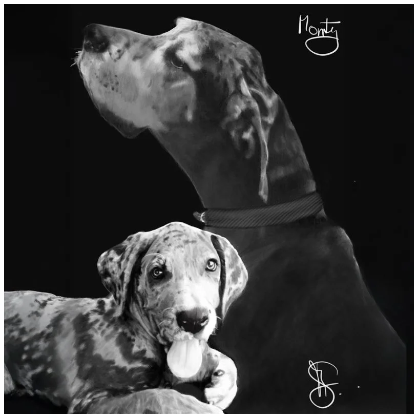 Capture the unique essence of your beloved pets with my custom portraits. Whether crafted digitally on my iPad* or with traditional pencils, graphite, and charcoal on paper, each piece is meticulously created from high-quality photos you provide. Understanding a bit about your pet's personality helps me to bring their character to life in a loving, realistic depiction.