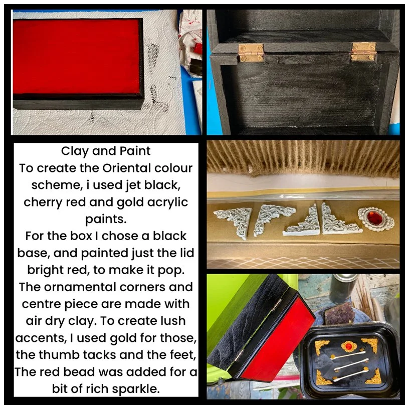 Oriental keepsake boxes are intricately designed storage containers often used to hold precious items such as jewelry, letters, and small mementos. These boxes are renowned for their detailed craftsmanship, cultural significance, and the variety of materials and techniques used in their creation. In this case, the design was requested to suit a beautiful set of Oriental Dice.